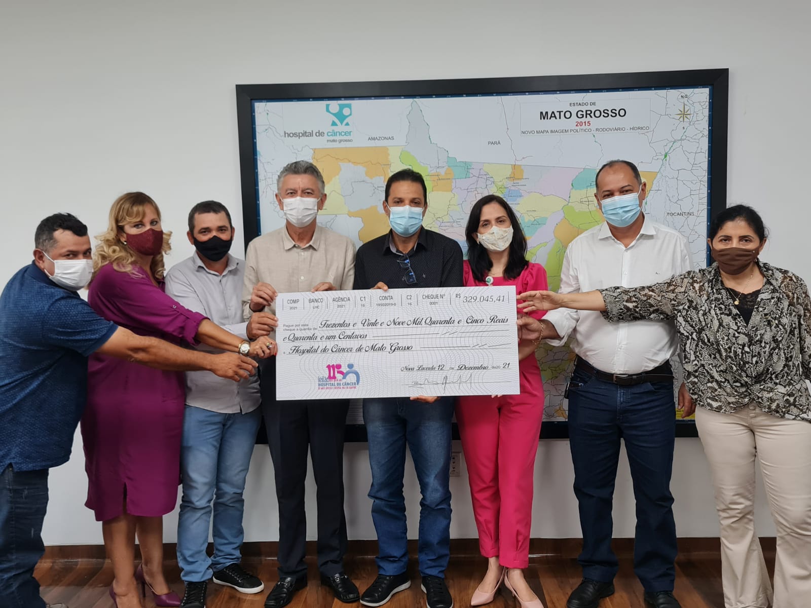 O valor doado ao HCanMT foi de R$ 329.045,41, acertado no dia 10 de fevereiro com a presença do Prefeito de Nova Lacerda Uilson José da Silva, do Secretário de Saúde Rinaldo Miranda Constancia, do Vereador Ademilson Pissuna e do Secretário de Desenvolvimento Rural Marcinho.