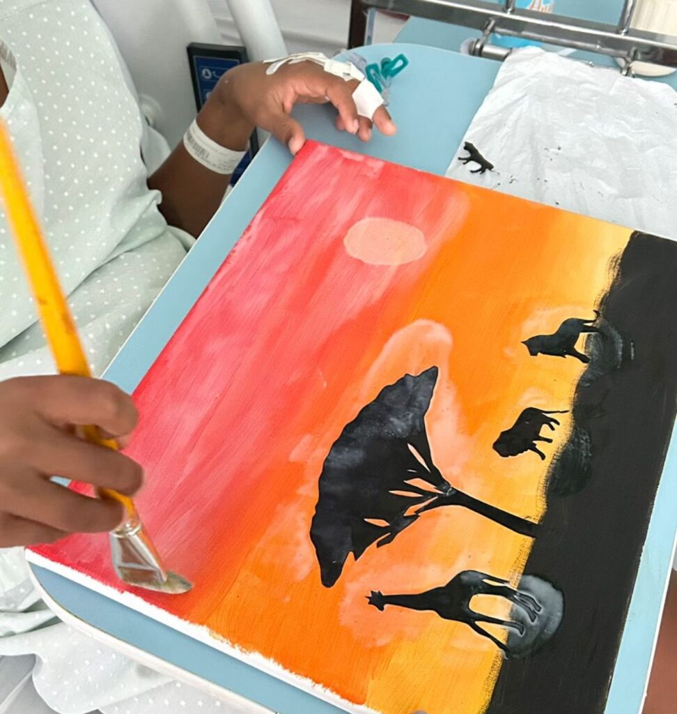 O Hospital de Câncer de Mato Grosso abriu as portas do Espaço Família no dia 19 de novembro para receber a exposição “África e Suas Cores: Cores, Vida e Aprendizagem”, resultado de dois meses de trabalhos artísticos desenvolvidos por crianças em tratamento oncológico. A iniciativa envolveu professores da classe hospitalar e representantes da Secretaria de Estado de Educação e Cultura, em uma ação que trouxe cor, cultura e acolhimento para dentro do ambiente hospitalar.