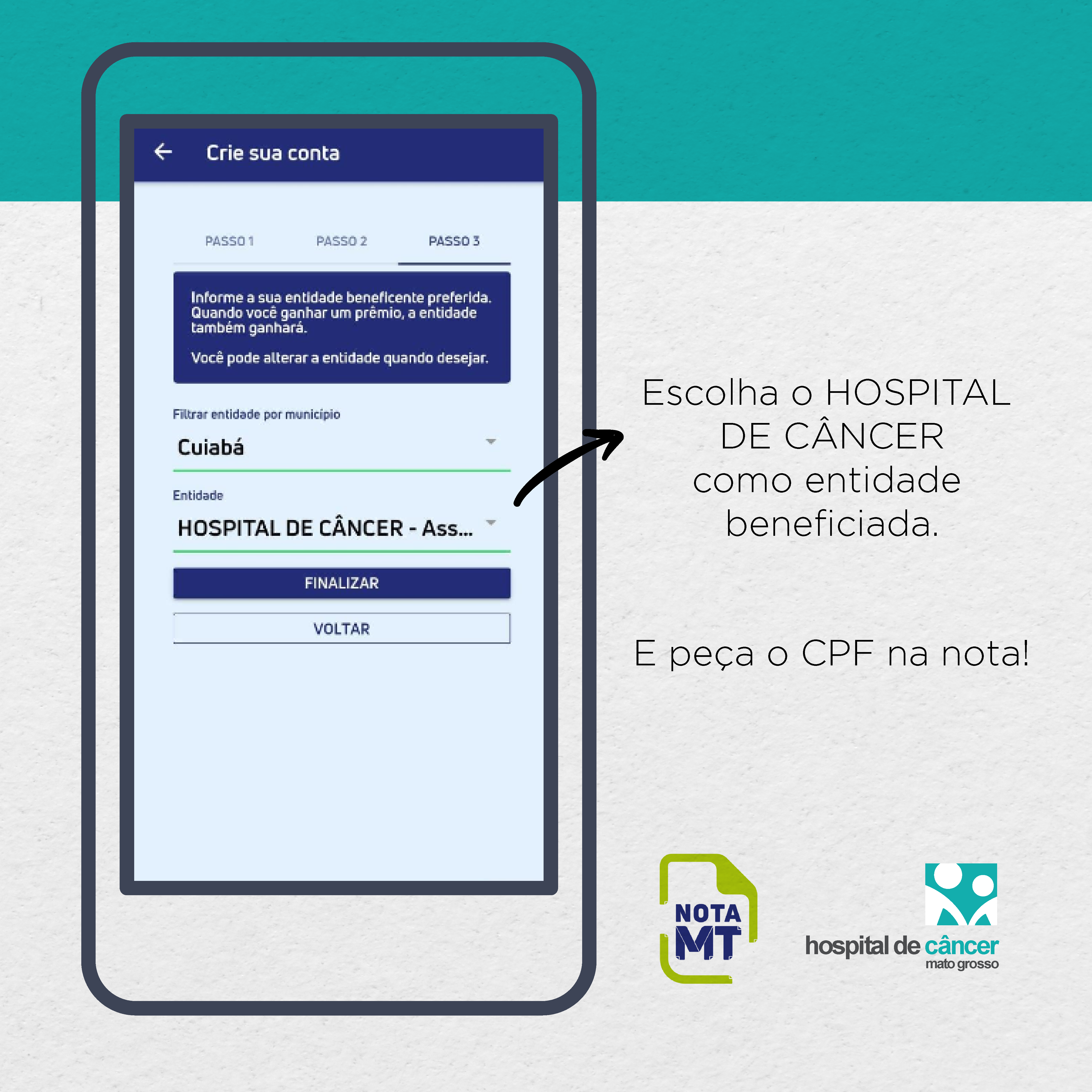 Vale lembrar que o contemplado do Nota MT que indica uma instituição social, a beneficia com 20% do valor de cada prêmio recebido. Para participar dos sorteios, o consumidor deve baixar o aplicativo NOTA MT e indicar uma instituição para receber uma doação, caso o usuário seja sorteado. Também deve solicitar que seu CPF seja informado na nota fiscal no momento da aquisição da mercadoria.