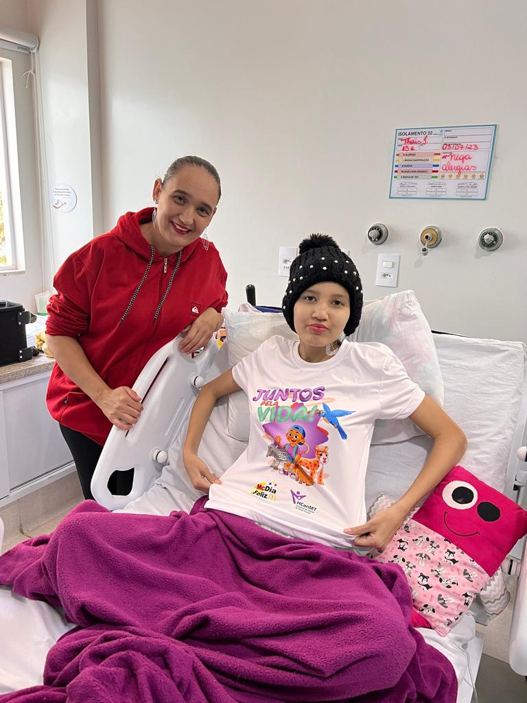 Já a Thais Isabelle, 13 anos, gosta muito do Espaço da Família, onde pode brincar com bonecas. “Gosto muito também da janela que entra o sol e também da cama, que é bem confortável. Quando as pessoas ajudam comprando camiseta e tíquete, estão apoiando a pediatria do Hospital e ajudando a gente a ficar mais feliz”, afirma. A Thais trata de uma leucemia e logo receberá a doação de medula da sua irmã, que é 100% compatível.