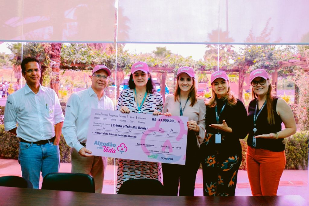 A Tama Brasil e a Scheffer entregaram hoje (31) o valor de R$ 33 mil de doação para o Hospital de Câncer de Mato Grosso (HCanMT ) referente à campanha Algodão Rosa. O recurso será utilizado para manutenção do Hospital, que em 2019 já realizou mais de 82 mil atendimentos.